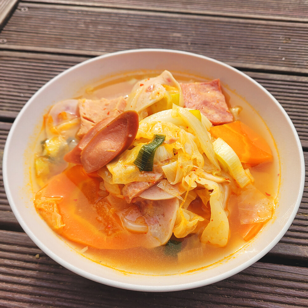 스팸, 소시지, 햄을 푸짐하게 넣어 끓인