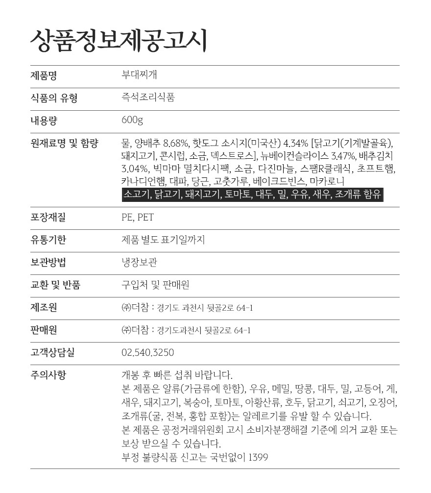 더욱 다양한 재료로 만든 수제 부대찌개를 간편히 만나보세요 :)