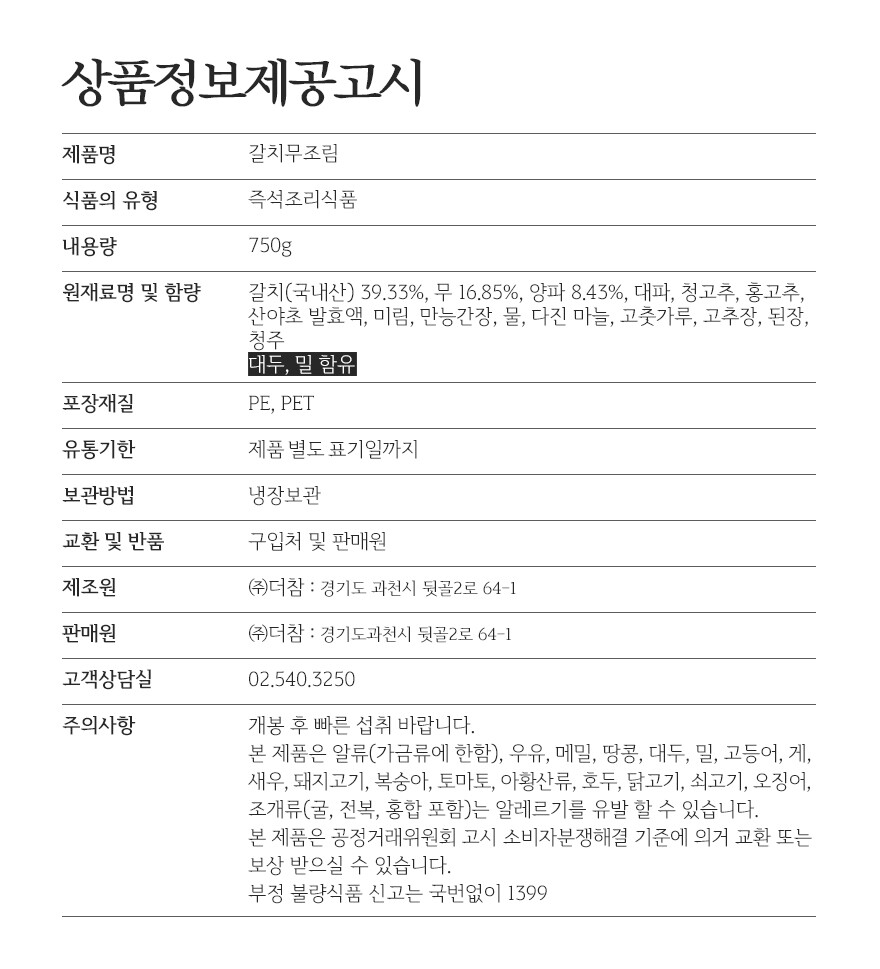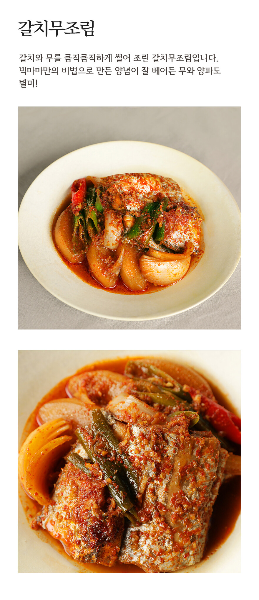 빅마마 이혜정의 비법으로 잘 조려낸 국내산 갈치와 제철 무를 즐겨보세요.