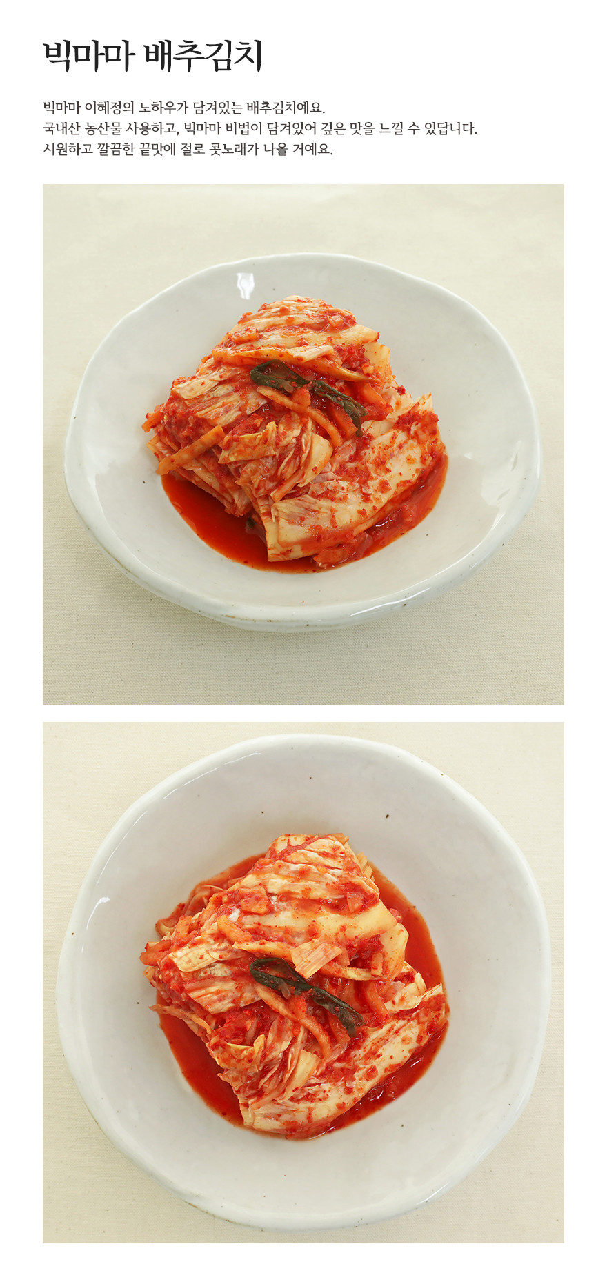 없어서 못판다고 소문이 자자한 빅마마김치를 큰 용량 2kg으로 만나보세요!