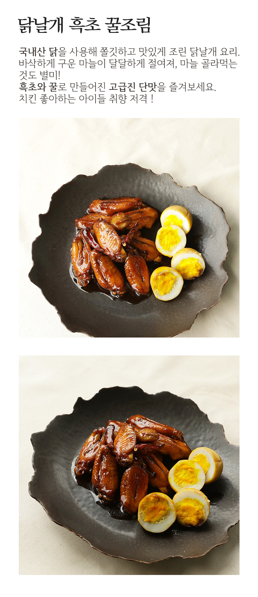국내산 닭날개를 사용해 쫄깃하고, 흑초와 꿀로 만든 소스의 고급진 달달함이 특징인 닭요리.