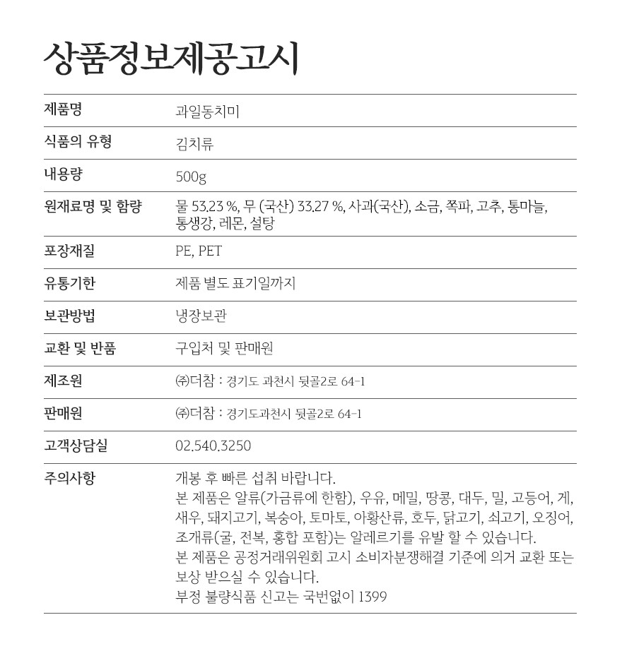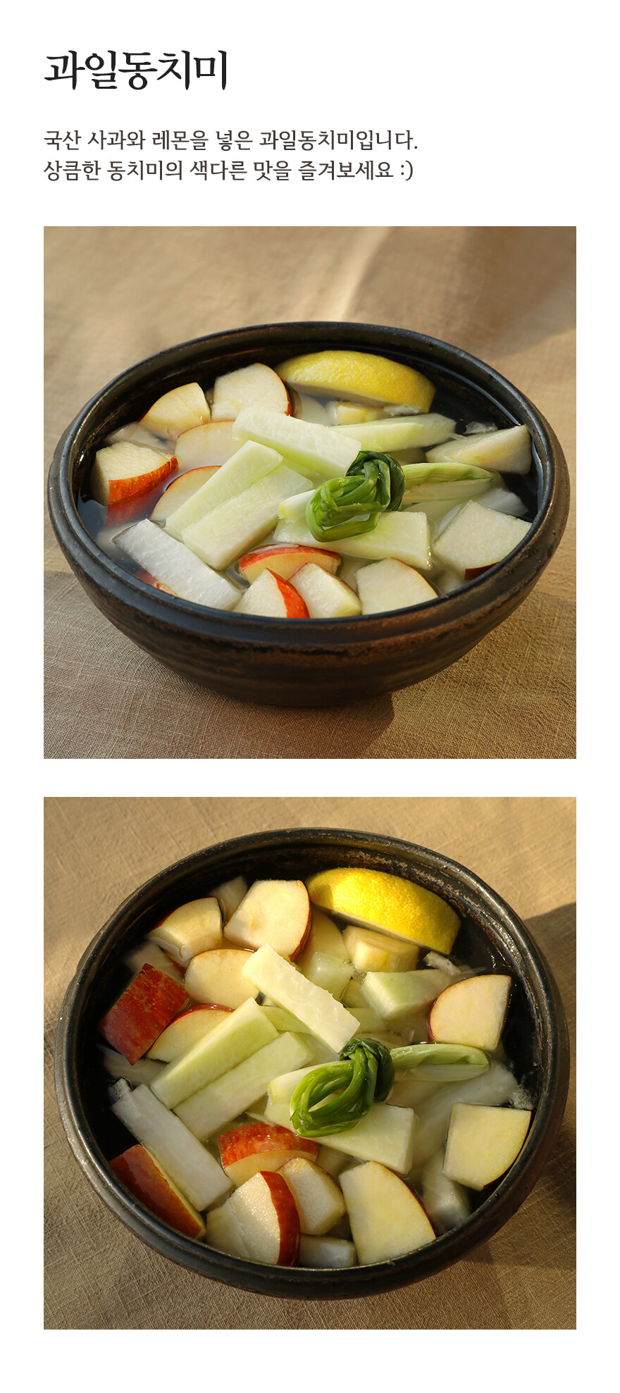 국산 사과와 레몬을 넣어 만든 과일동치미입니다 :)