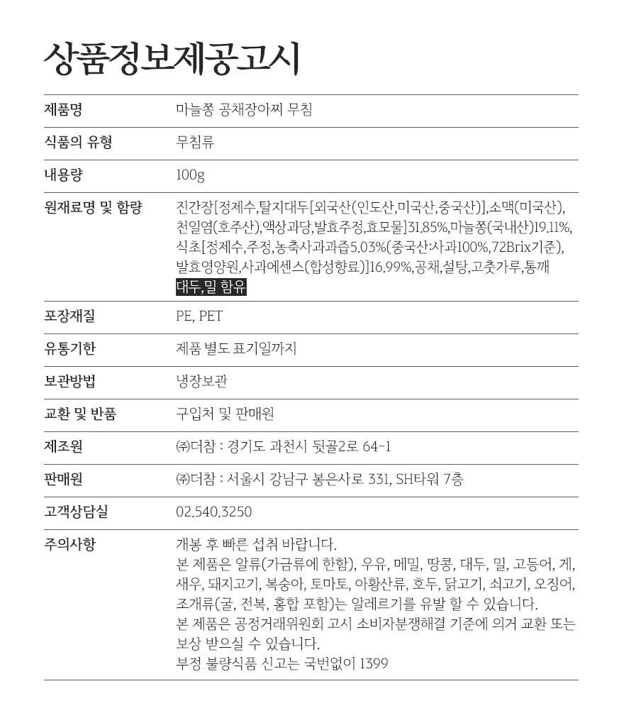 빅마마 마늘쫑 궁채장아찌 무침 100g