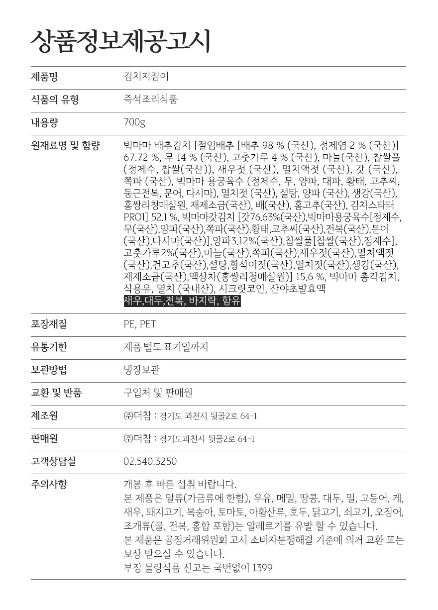 빅마마 김치 지짐이 700g