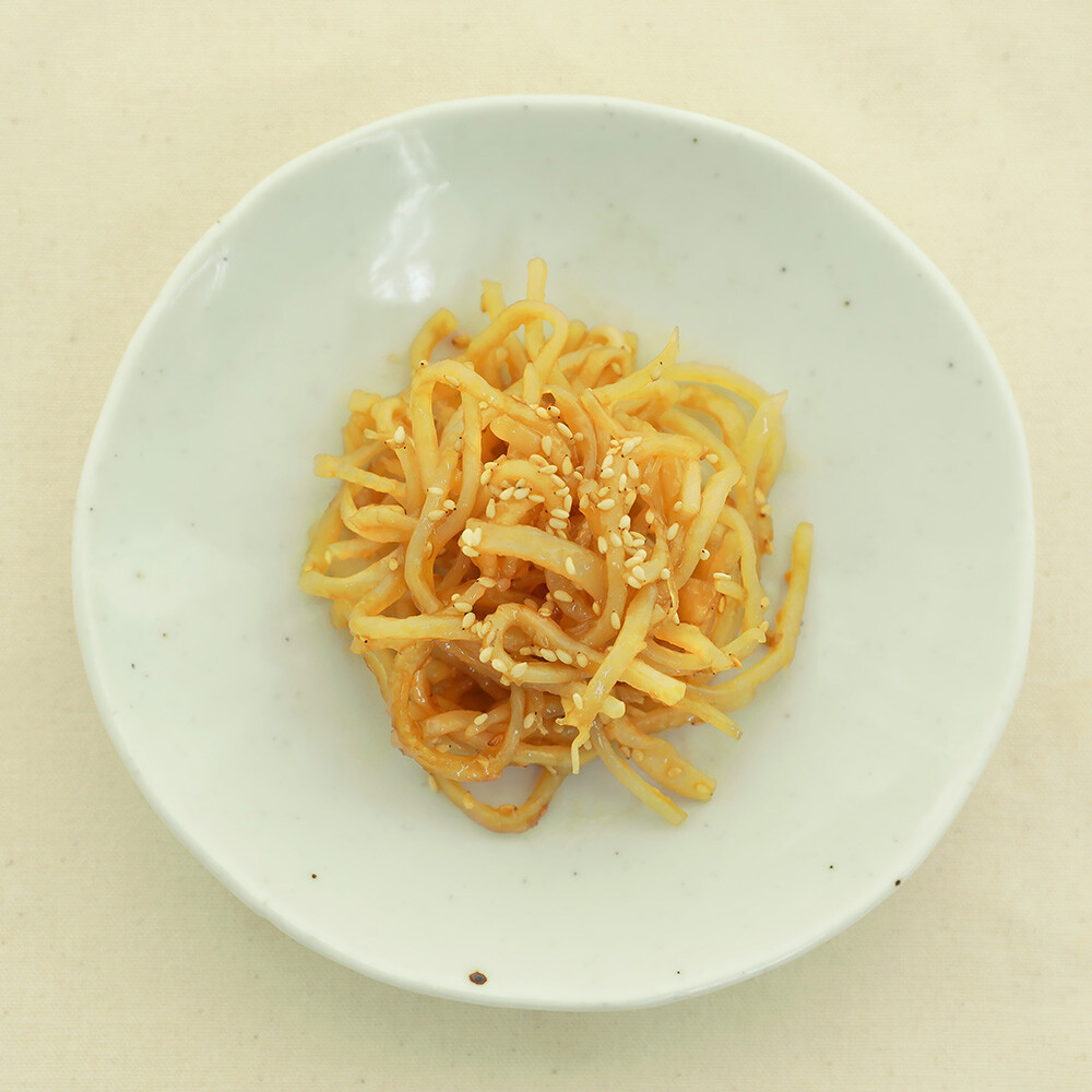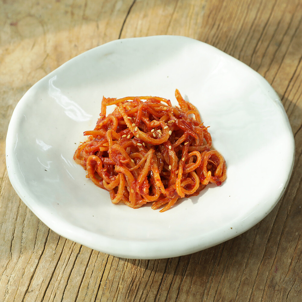 달짝지근한 빅마마 특제 간장 양념에 무친 부드러운 진미채.