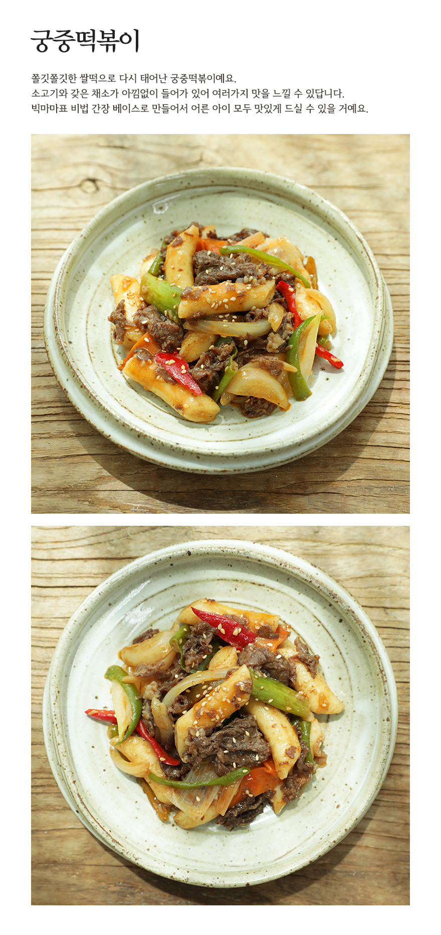 소고기와 갖은 채소를 넣어 만든 궁중식 떡볶이는 아이도 어른도 다함께 먹을 수 있는 온가족 떡볶이입니다.