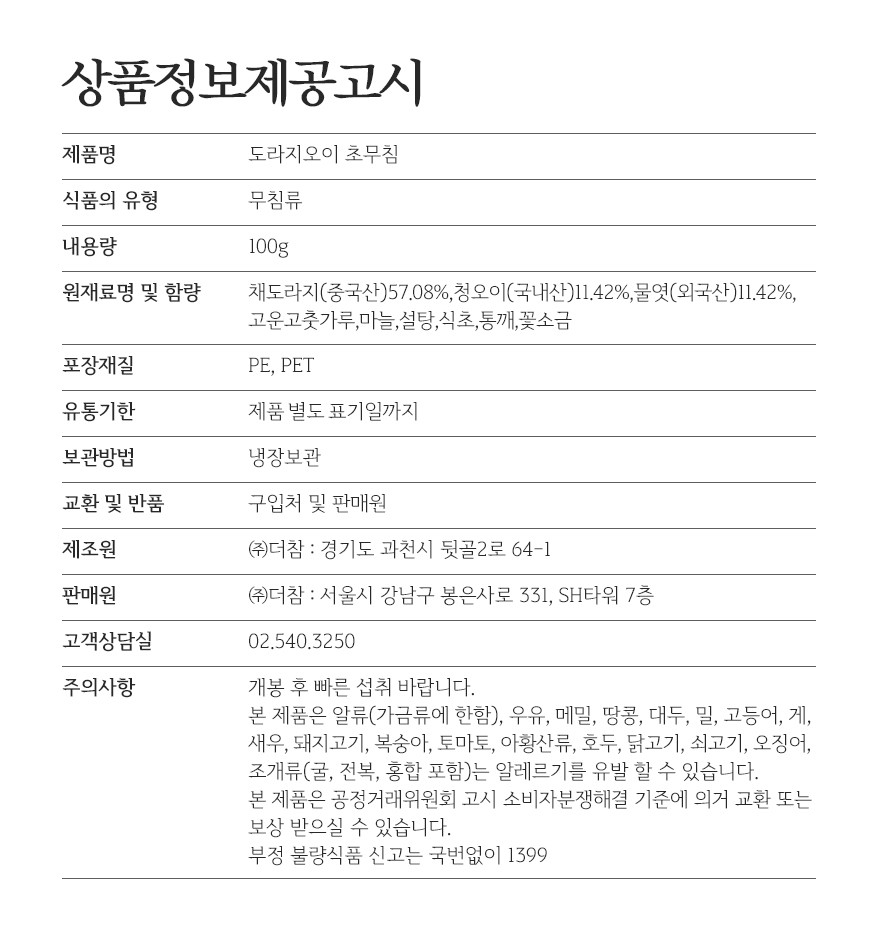 도라지의 향과 오이의 아삭함의 조화!