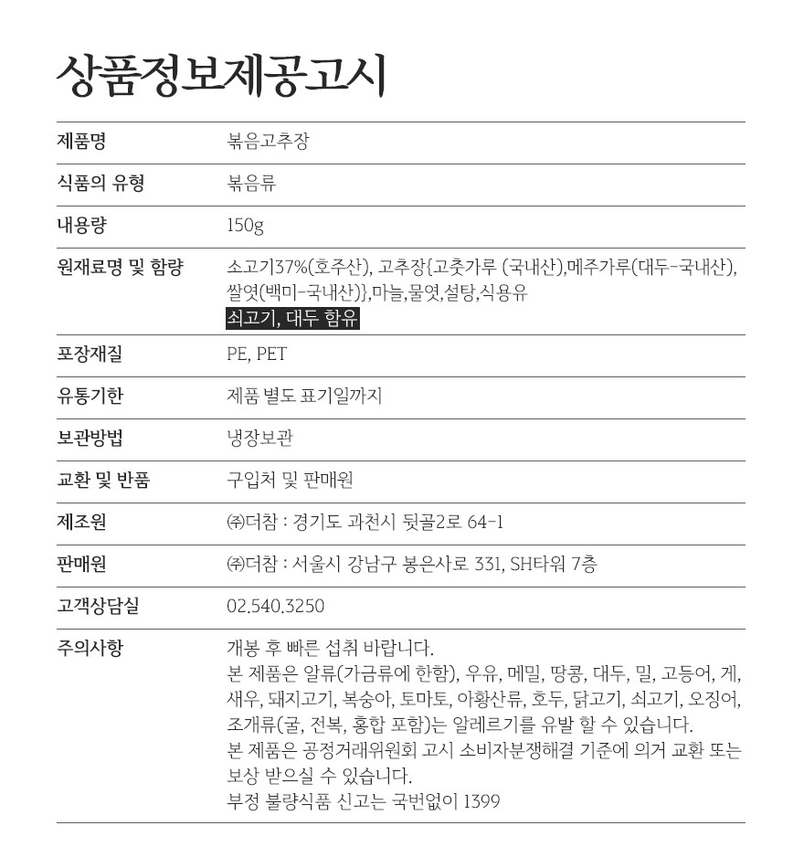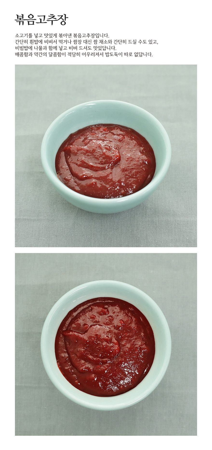 소고기와 국내산 잣을 듬뿍 넣고 맛있게 볶아낸 볶음고추장입니다.