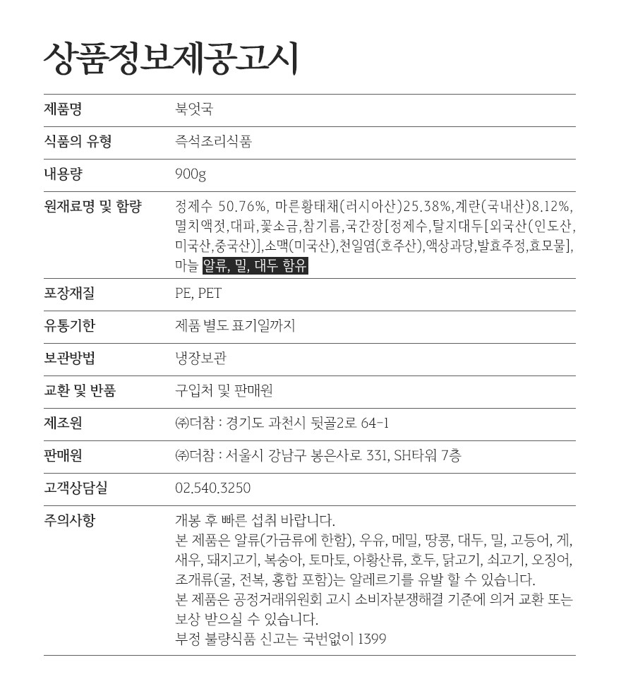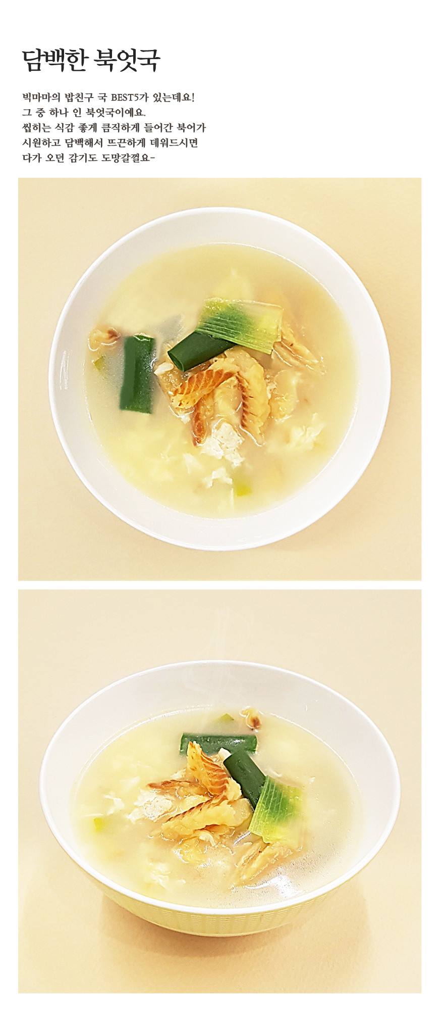 큼직하게 들어간 북어가 시원하고 담백해서 뜨끈하게 데워드시면 아픈목도, 감기도 도망갈꺼예요.