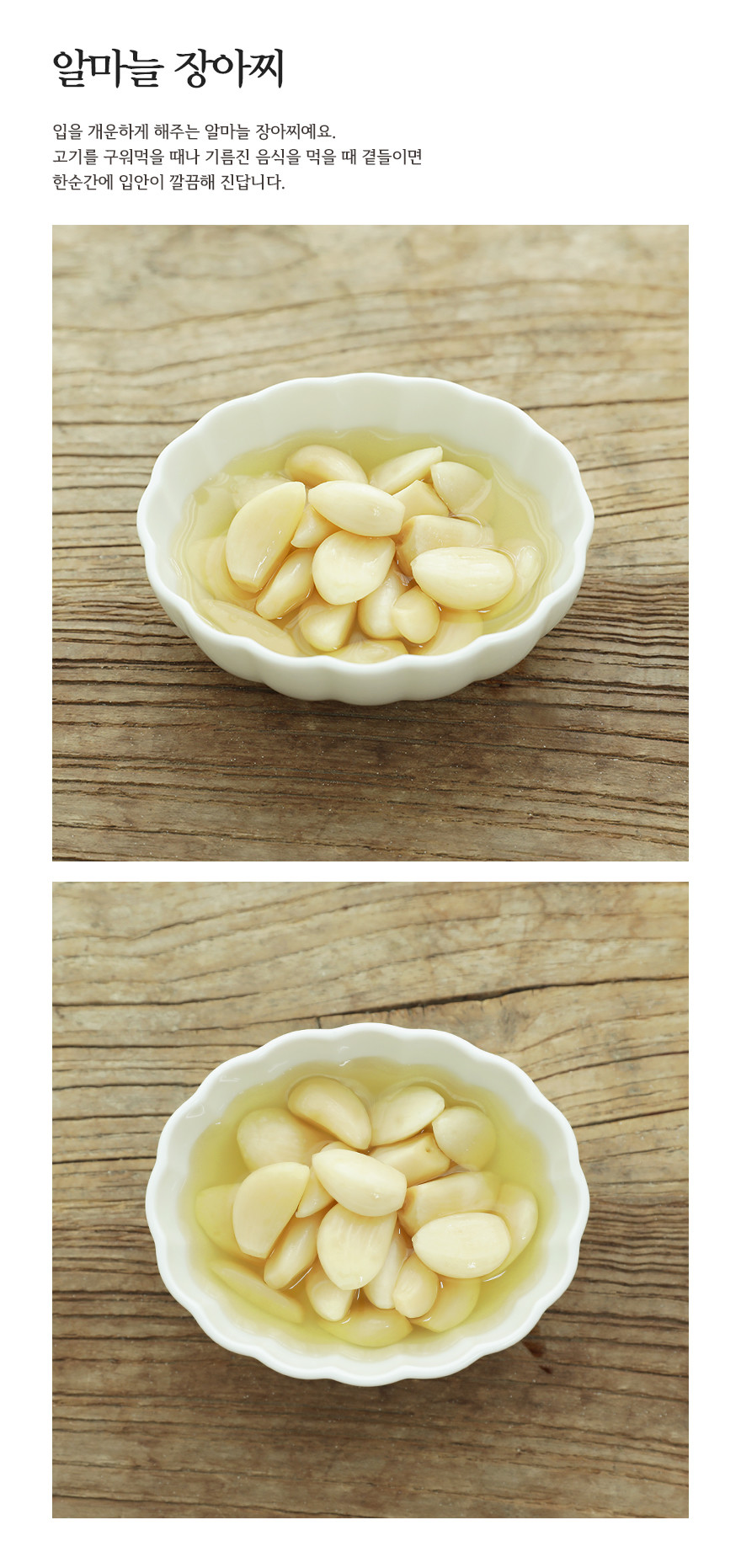 알싸하게 입을 개운하게 해주는 알마늘 장아찌예요.