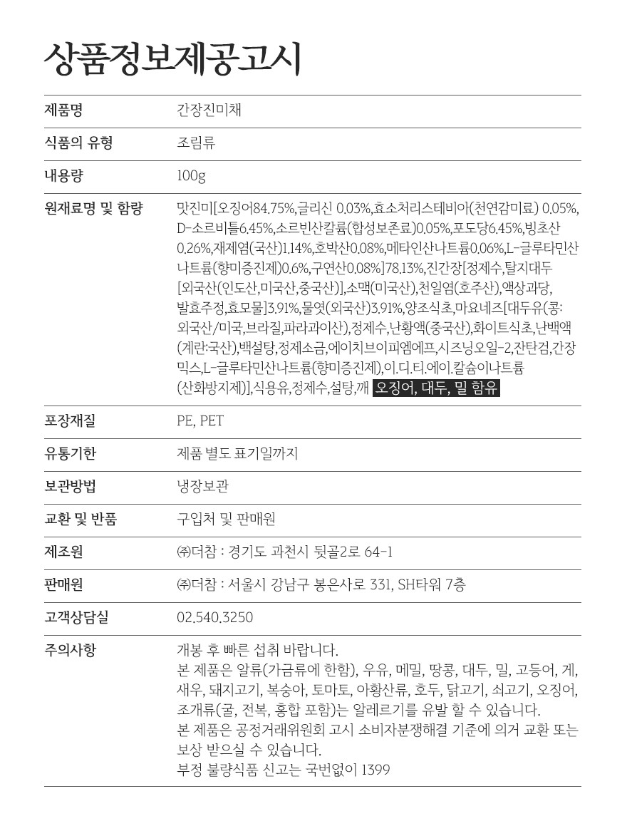 빅마마 특제 간장을 더한 간장 진미채예요.