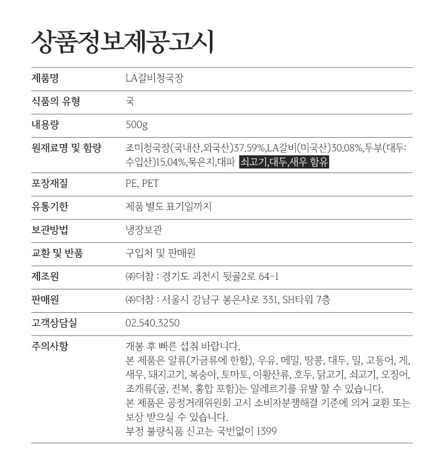 짜지않고 고소한 청국장에 갈비를 넣어,