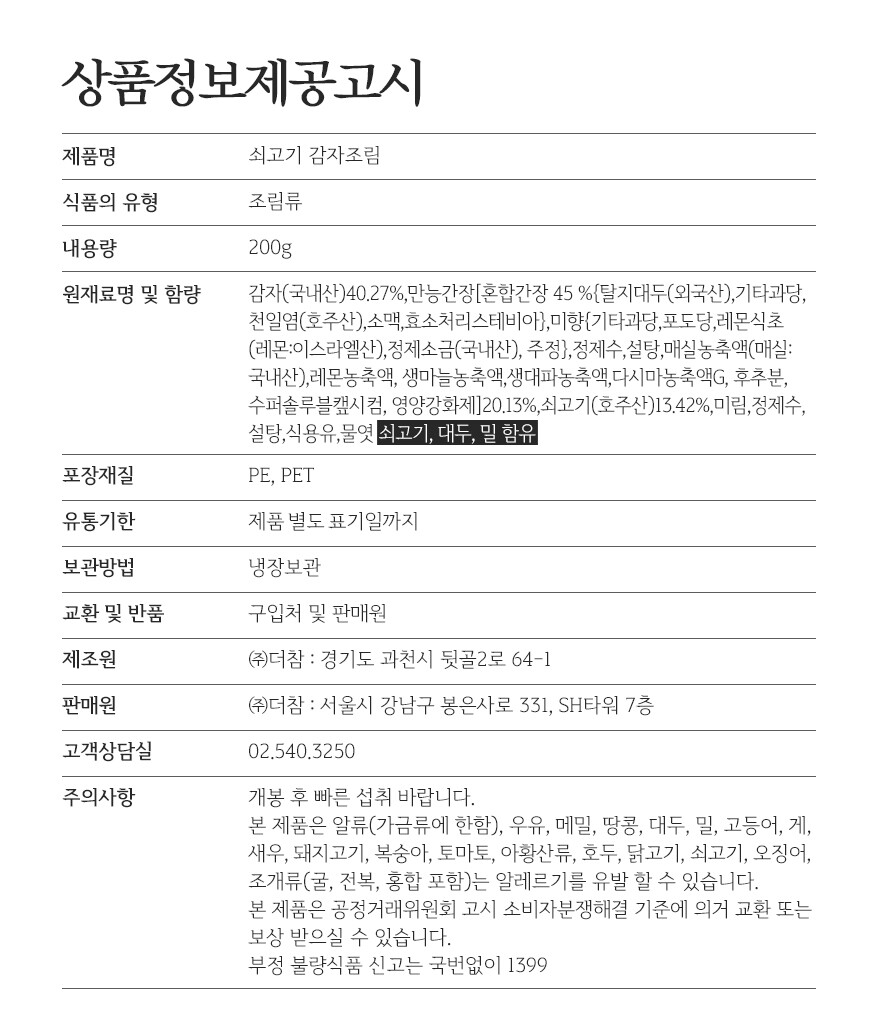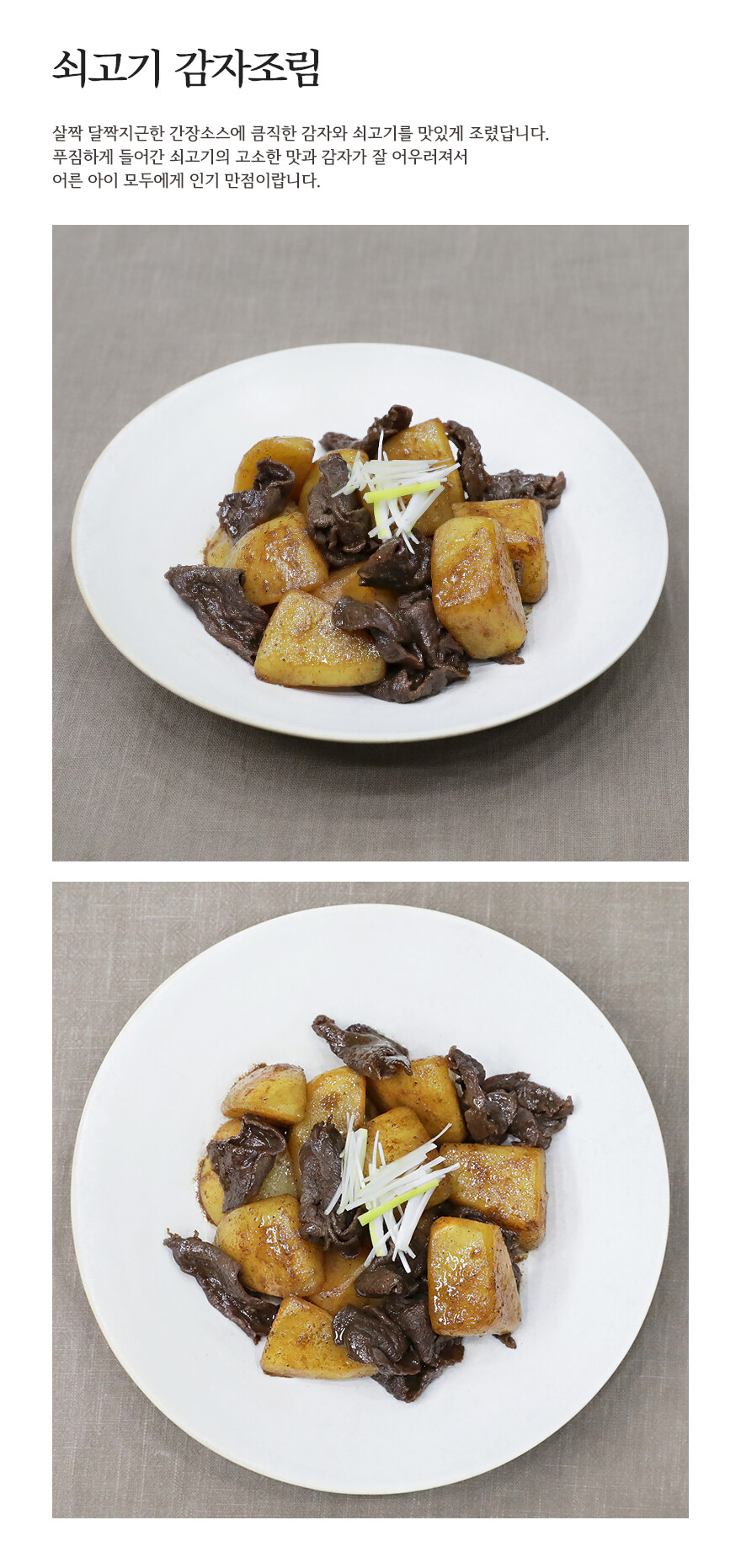 간장소스에 큼직한 감자와 쇠고기를 맛있게 조렸답니다.