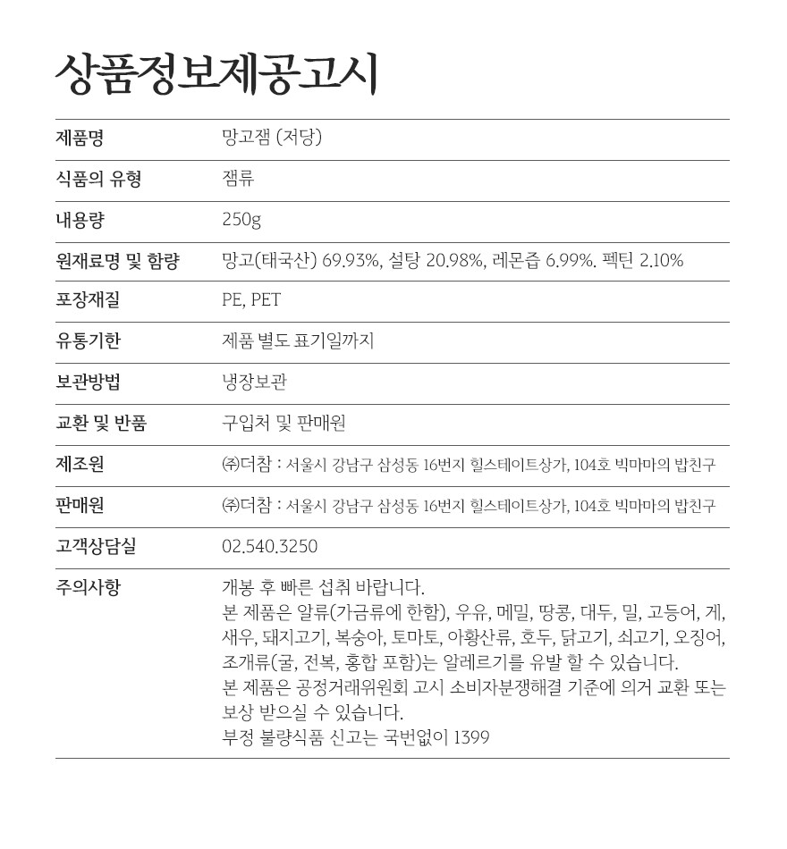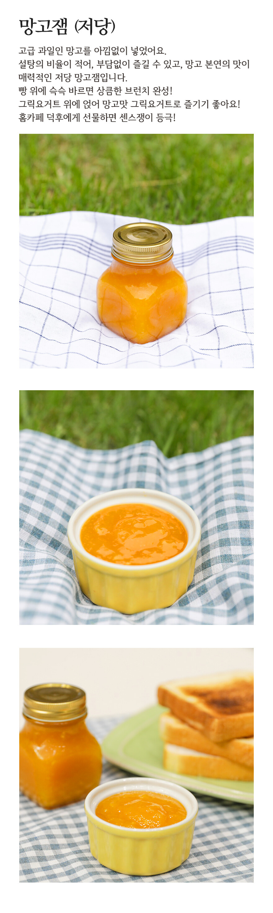 태국산 망고를 빅마마 이혜정이 손수 손질해 만들었습니다. 망고 함유량이 높아 망고 고유의 맛을 느낄 수 있는 고급잼입니다. 선물용으로 좋아요!